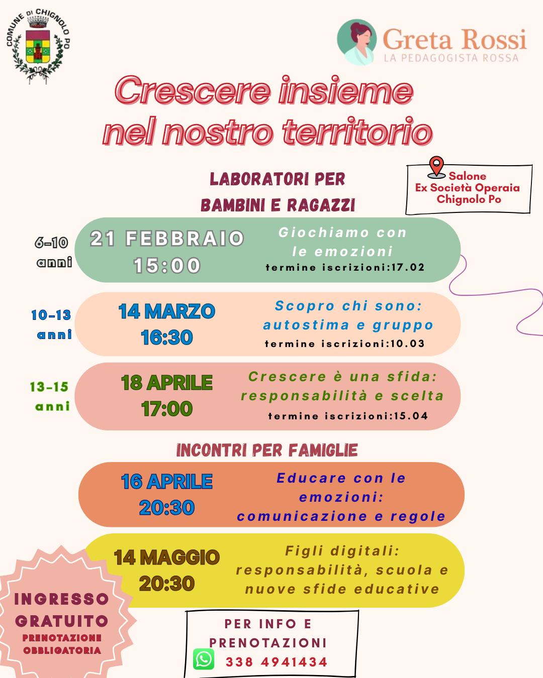Laboratori ed incontri per famiglie, bambini e ragazzi.
